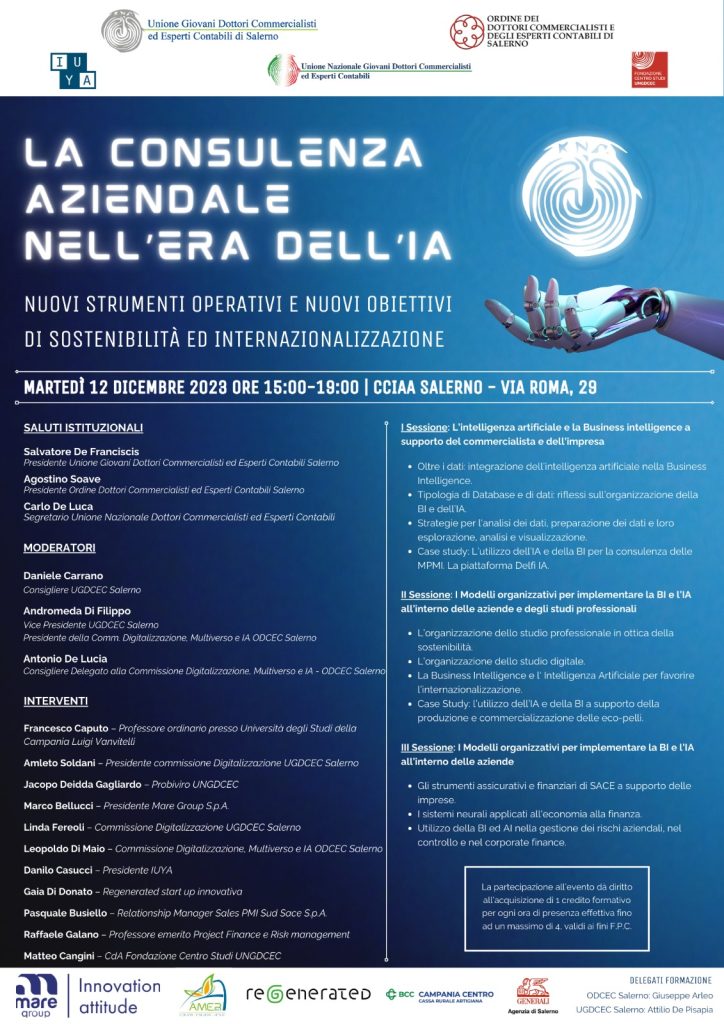 La riunione organizzata dall’Unione giovani dottori commercialisti, con il patrocinio dell’ODCEC Salerno, Martedì 12 dicembre 2023 dalle ore 15 alle 19.